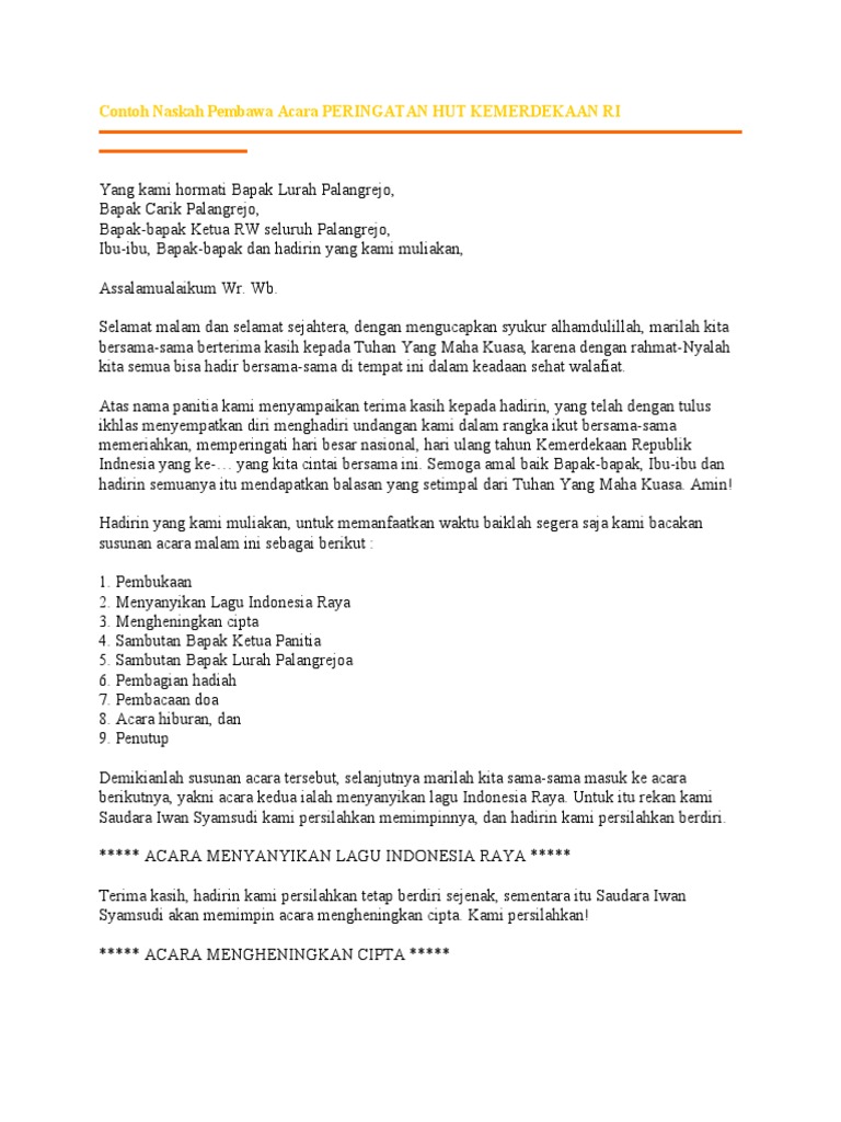2 from Teks pembawa acara festival band antar pelajar. Formal, karena pejabat sekelas gubernur hadir dan menjadi narasumber utama. Entah gimana ceritanya, kemarin saya ditunjuk menjadi pembawa acara, alias mc (master of ceremony) acara formal di kantor. Bagaimana cara mempersiapkan kalimat pembuka dan penutup yang baik dan benar? Kalimat pembuka atau mukadimah teks atau naskah 11 kalimat pembuka kata sambutan dalam acara pengajian, pidato atau pembawa acara, mc, kultumbelajar. Sekalian yang kami hormati, semoga. Kepenulisan kalimat penutup dalam esay dilakukan untuk merangkai kesimpulannya dalam budaya pada awalnya membawa kita melalui asal mula terbentuknya kepercayaan yang dianut oleh setiap manusia (kepercayaan agama). Savesave kalimat sambutan pembawa acara maulid.doc for later.